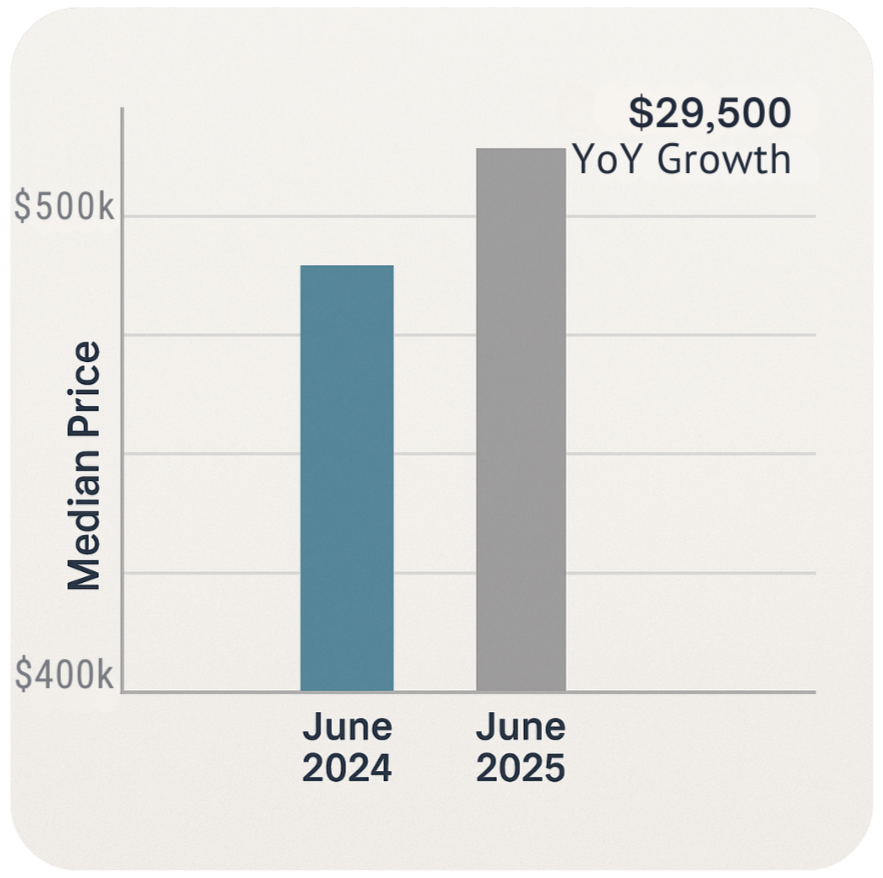 Detached homes continue to anchor the market. In June, the median sale price hit $524,500, up from $495,000 last year—an impressive $29,500 equity gain year-over-year.