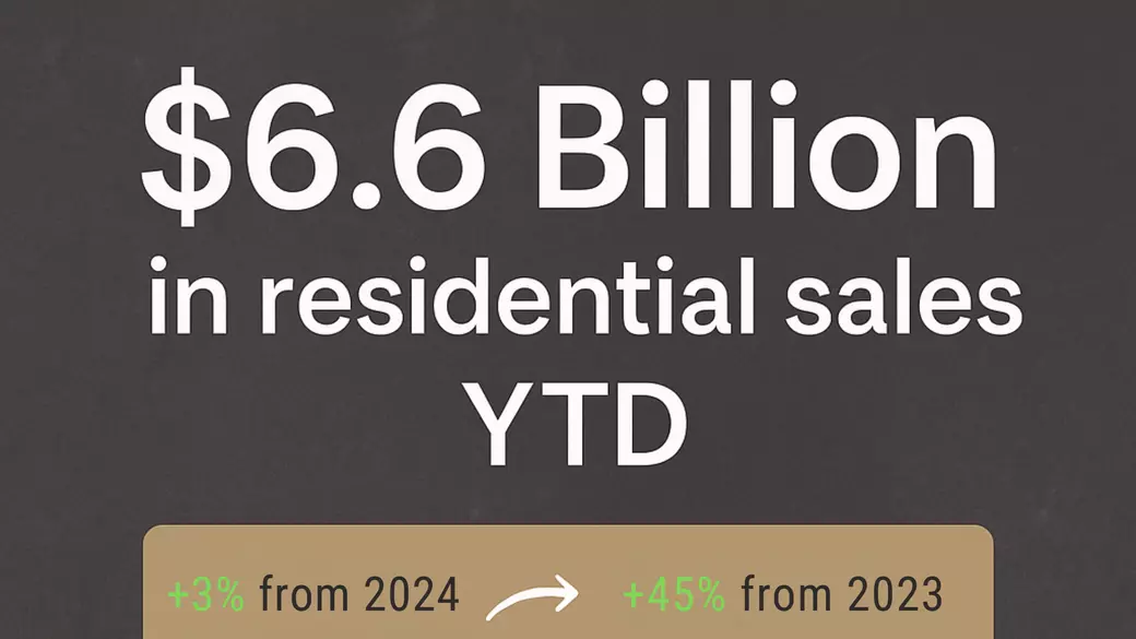 Halfway through the year, total residential sales volume has surpassed $6.6 billion—3% ahead of 2024 and a remarkable 45% above mid-2023. The activity is still there. It’s just no longer frantic.